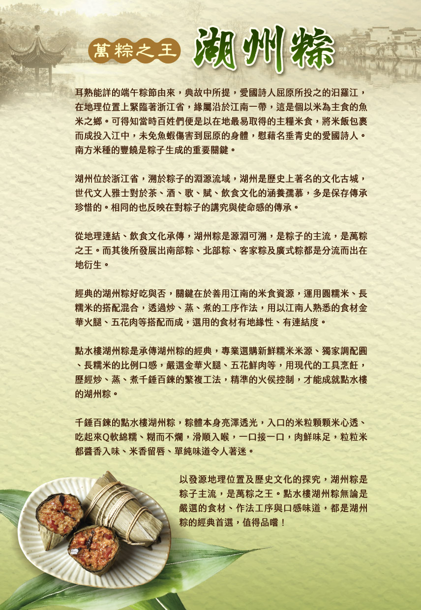 端陽粽飄香-【萬粽之王-經典湖州粽】熱烈預購中!(點圖片進入線上訂購單)