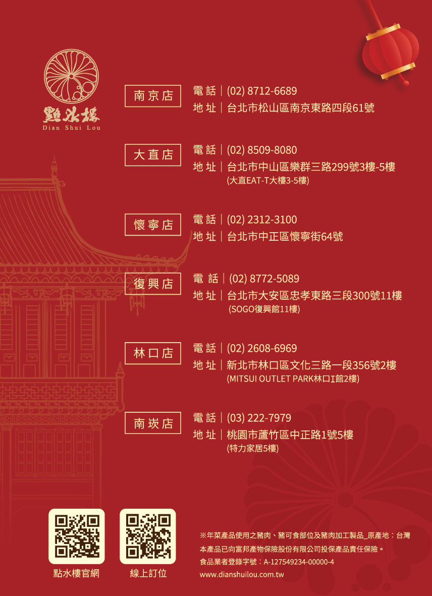 點水樓2026年經典年菜開賣啦! (點圖片進入線上訂購單)
